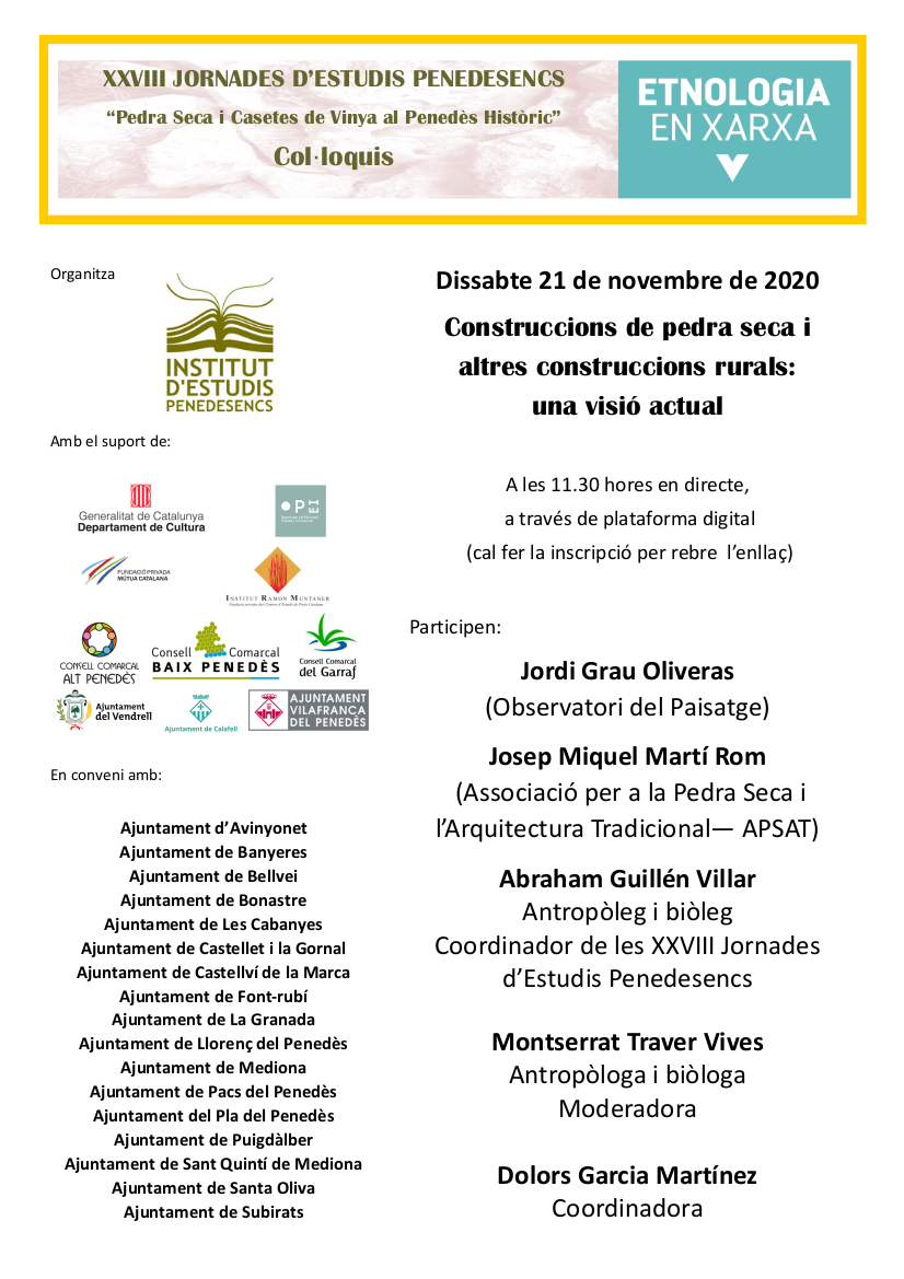Coordinador de les XXVIII Jornades d’Estudis Penedesencs