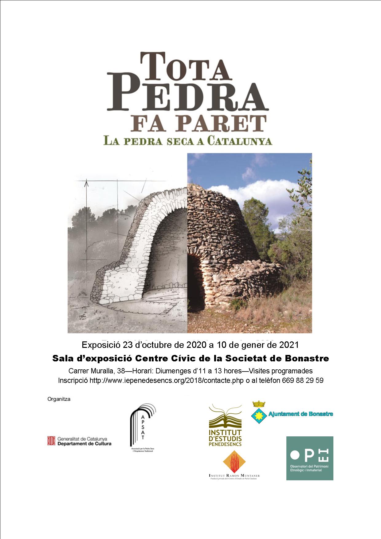 Amb motiu del reconeixement de la tècnica de la pedra seca com a patrimoni cultural immaterial per part de la UNESCO, el novembre de 2018, l’Associació per la Pedra Seca i l’Arquitectura Tradicional i el Departament de Cultura de la Generalitat de Catalunya han produït aquesta exposició sobre les construccions i les tècniques presents al nostre país. La mostra, eminentment fotogràfica, pretén oferir una panoràmica àmplia sobre aquest llegat, posant èmfasi en les variants tipològiques més habituals i en la diversitat territorial. Explica, també, la vigència actual d’aquesta arquitectura, harmònica amb l’entorn natural i sostenible des de tots els punts de vista.