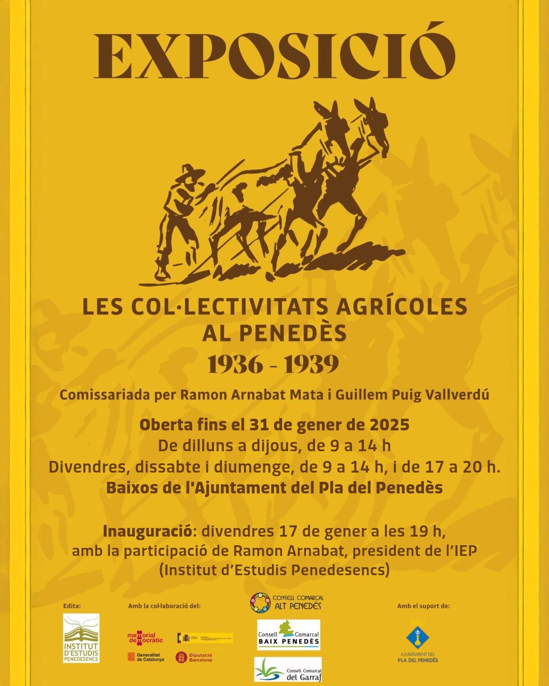 Inauguració: divendres 17 de gener a les 19 h, amb la participació de Ramon Arnabat, president de l'Institut d'Estudis Penedesencs