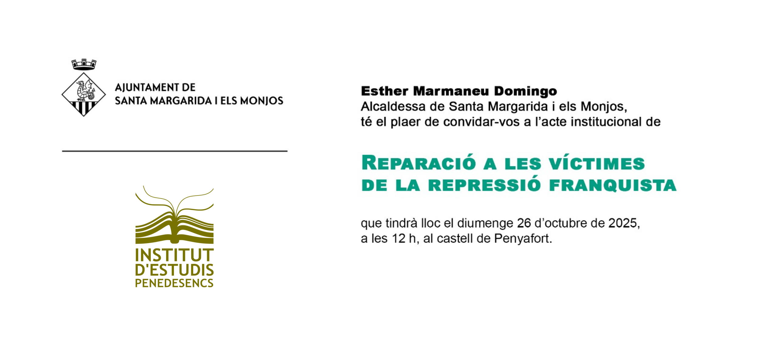 Reparació de les víctimes de la repressió franquista 26 d'octubre 2025 12:00 hores Castell de Penyafort - Santa Margarida i els Monjos