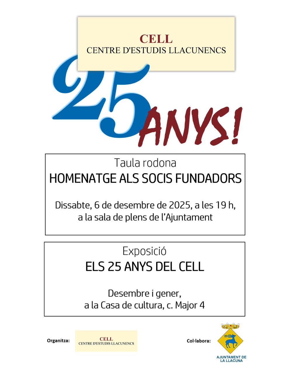 Exposició "Els 25 anys del CELL"Desembre i gener a la Casa de cultura, c. Major, 4