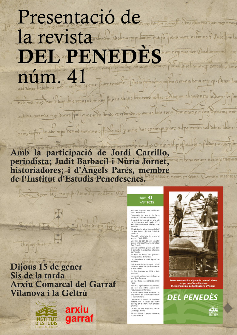 Presentació de la revista "Del Penedès" núm. 41 15 de gener 2026 18:00 hores Arxiu Comarcal del Garraf - Vilanova i la Geltrú