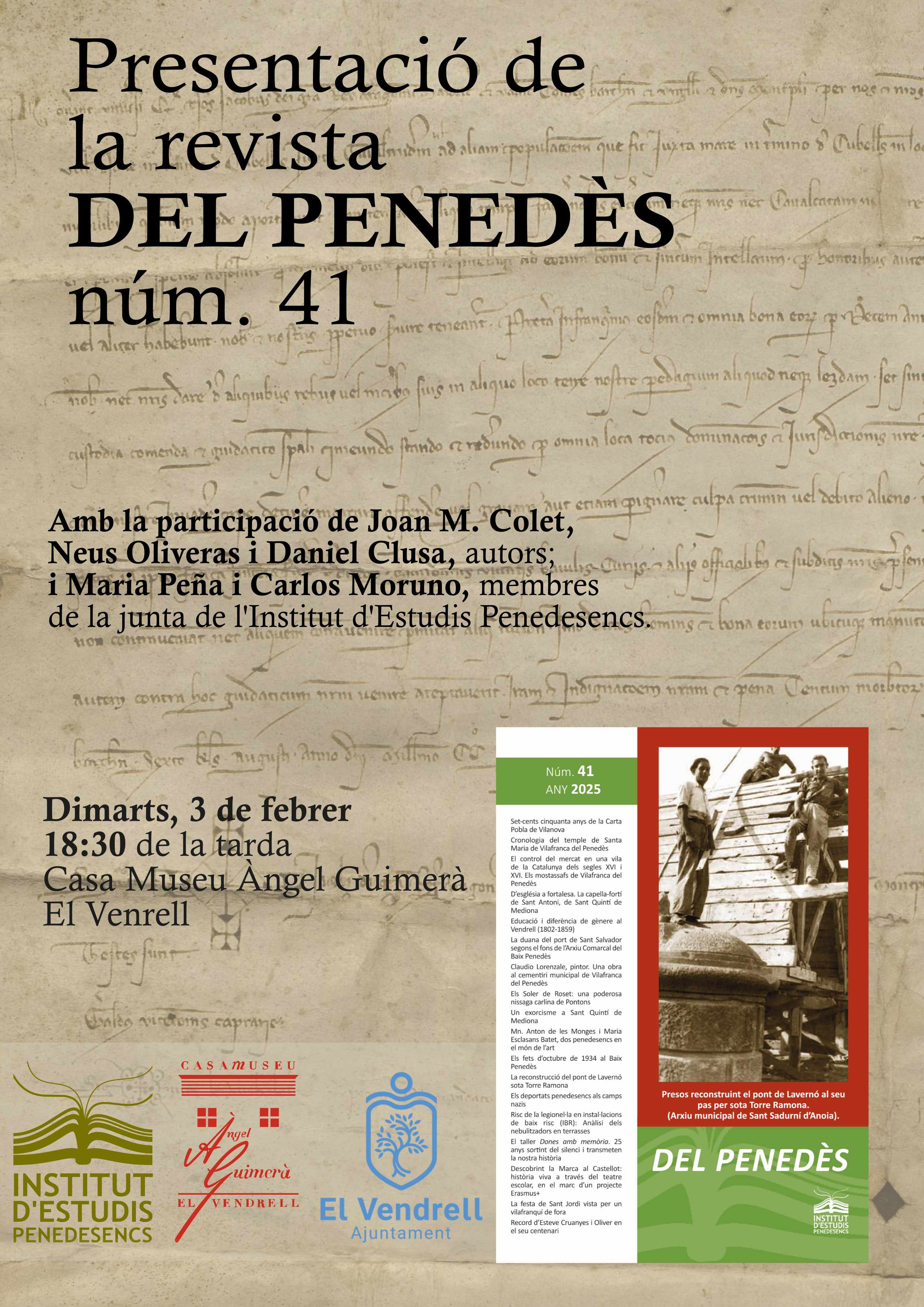 Presentació de la revista El Penedès núm. 41 03 de febrer 2026 18:30 hores Casa Museu Àngel Guimerà - El Vendrell