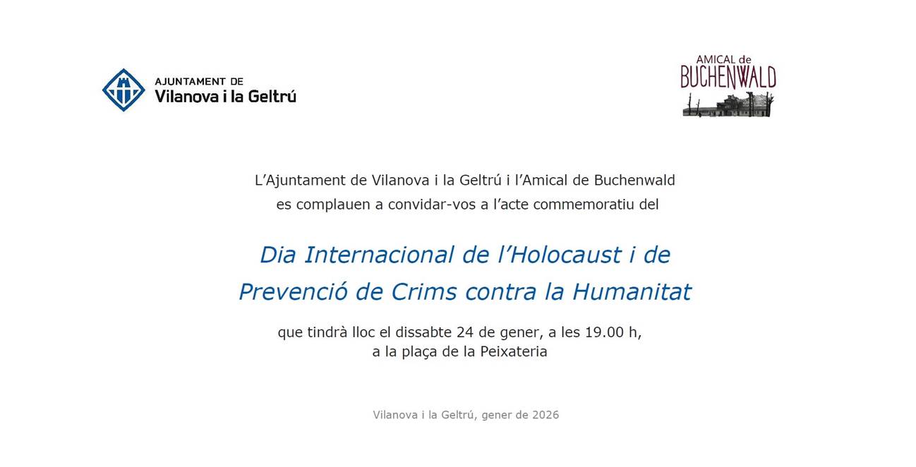 Dia Internacional de l'Holocaust i de Prevenció de Crims contra la Humanitat 24 de gener 2026 19:00 hores Plaça de la Peixateria - Vilanova i la Geltrú