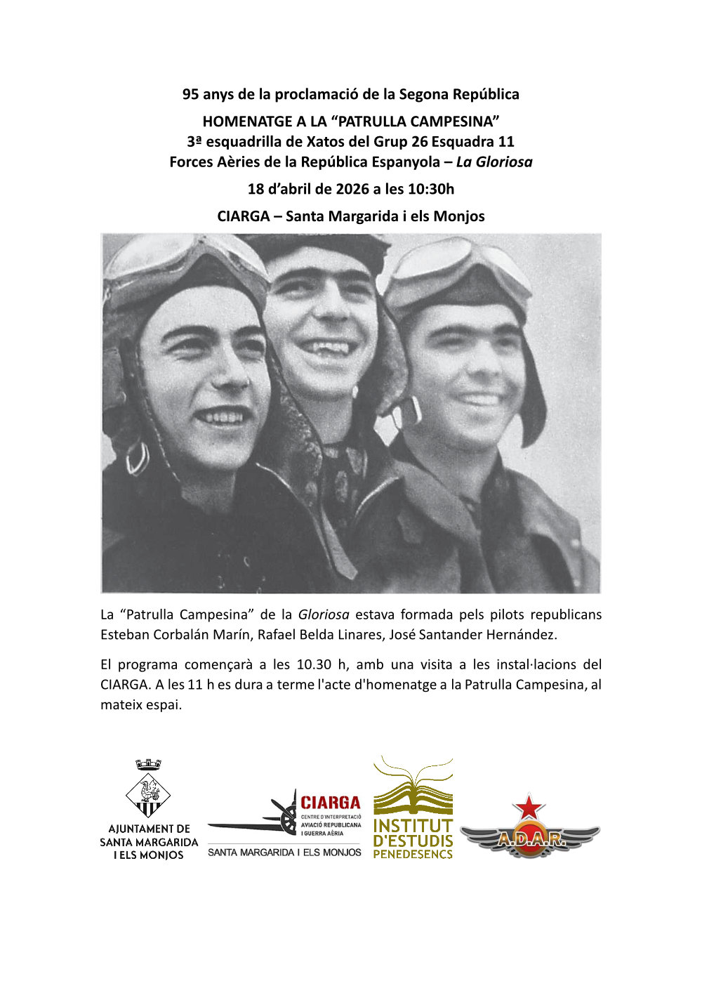 El programa començarà a les 10.30 h, amb una visita a les instal·lacions del CIARGA. A les 11 h es dura a terme l'acte d'homenatge a la Patrulla Campesina, al mateix espai.