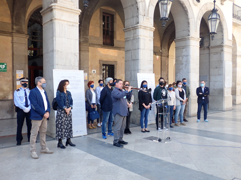 Acabat l’acte institucional, acompanyat pel músic Sr Paulí, s’ha iniciat el corregut per a inaugurar les “llabordes per ensopegar” o Stolpersteine.