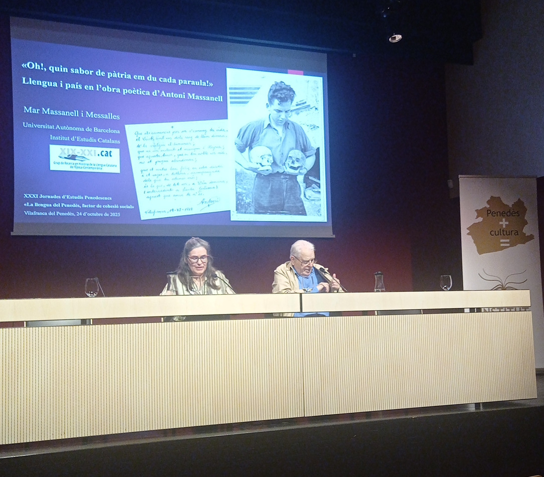 Tot seguit hi ha hagut la conferència de Mar Massanell, professora de la UAB i membre de l'Institut d'Estudis Catalans, que ha dissertat sobre "Oh!, quin sabor de pàtria em du cada paraula" Llengua i país en l'obra d'Antoni Massanell, tot presentant les diferents maneres de referir-se a la pàtria catalana en l'obra del poeta, a partir de fer un resseguiment exhaustiu de la seva dilatada obra.