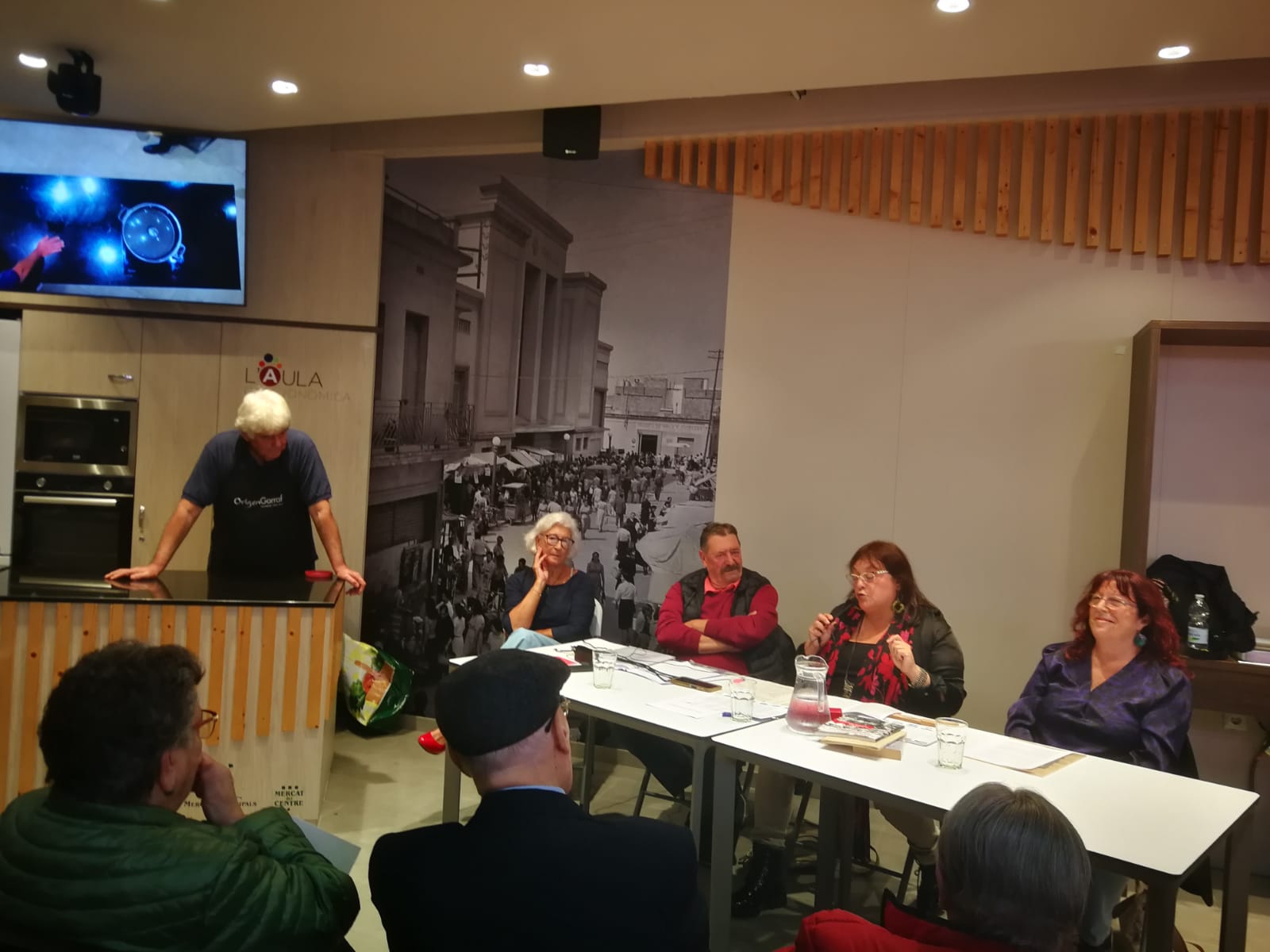 Divendres 14, l’Aula gastronòmica del Mercat Central de Vilanova i la Geltrú es va fer petita per acollir la taula rodona intitulada De la mar a la taula. Josep M. Matas (expert en gastronomia) i Eva Bolaño (gran coneixedora també de la gastronomia i regidora) ens van aportar una quantitat de terminologia i dites vilanovines i de la comarca marinera que van fer les delícies dels assistents. Llàstima que en Xavier Mestres no va poder acompanyar-nos per motius de salut perquè de ben segur encara n’hauríem après més. I mentre ambdós dissertaven, la flaira dels esmarris omplia el recinte, uns esmarris que en acabar l’acte van poder tastar gràcies a Salvador Pons, expert pescador que també va anar dient la seva en el debat mentre feia bullir l’olla (en sentit literal).