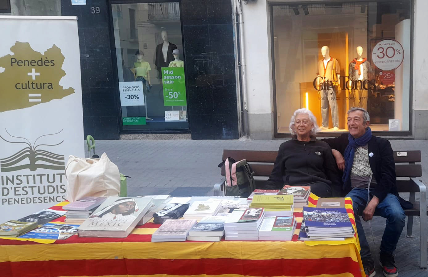 Enguany, l'Institut d'Estudis Penedesencs ha sigut novament present a la diada de Sant Jordi, amb parades a Vilafranca i Vilanova. Un temps esplèndid ha acompanyat a tots el que s'han acostat a veure les publicacions de l'Institut en ambdues ubicacions. Junt amb tot el que adquiria un llibre, es podien veure els socis que retiraven els que encara mancaven a la seva biblioteca particular.